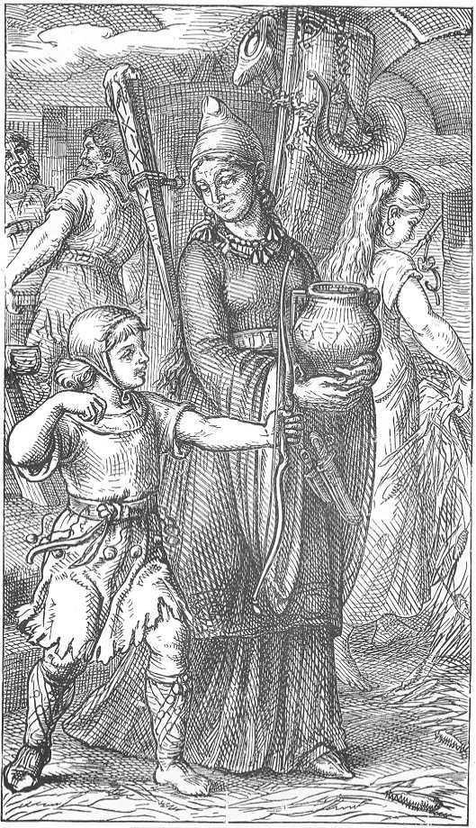 “Fru Astrida must sing you no more such Sagas,” said he, “if they fill your mind with these revengeful thoughts, fit only for the worshippers of Odin and Thor. Neither Ragnar nor his sons knew better than to rejoice in this deadly vengeance, but we, who are Christians, know that it is for us to forgive.”
