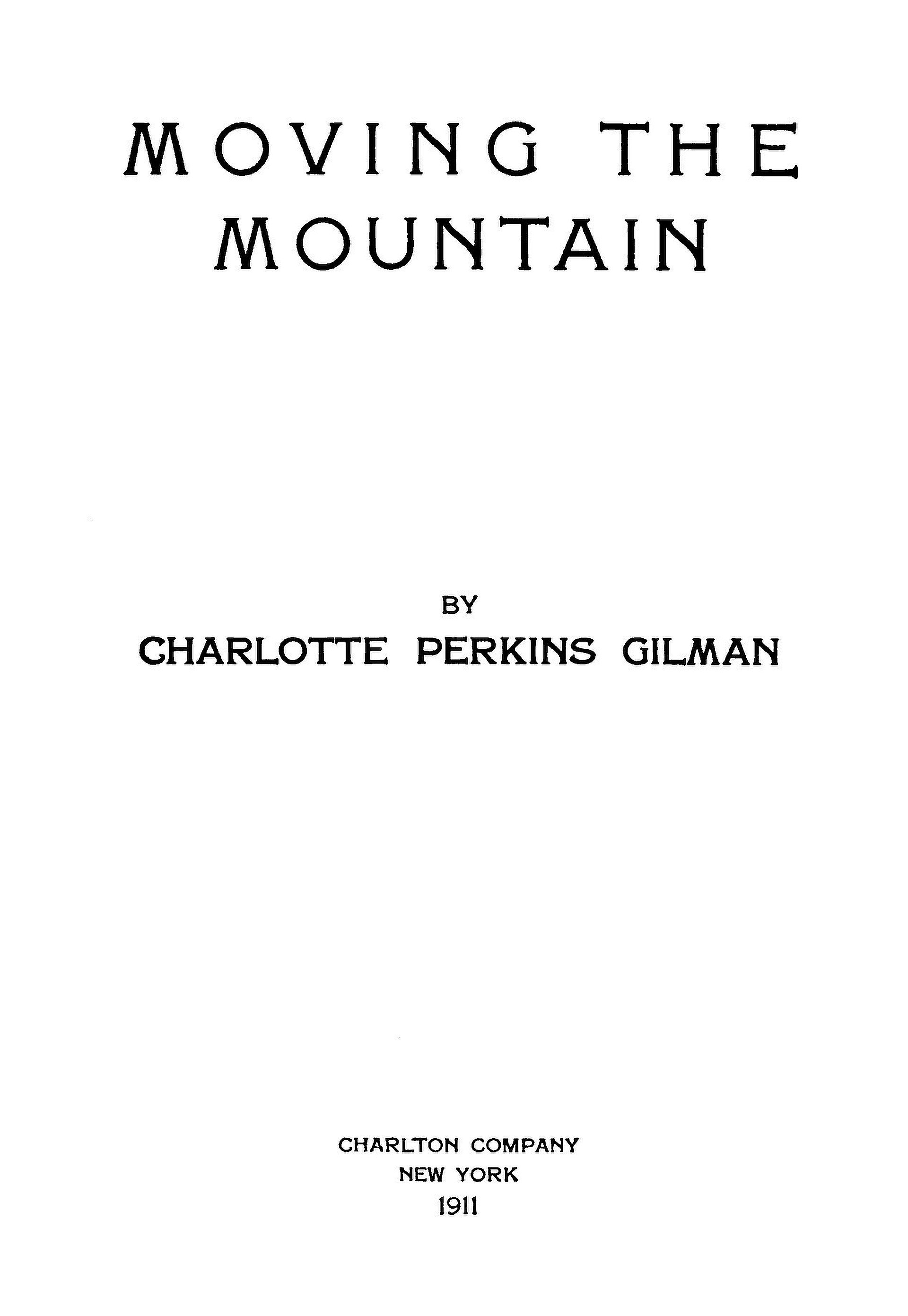 All these have one or two distinctive features—an element of extreme remoteness, or the introduction of some mysterious outside force. "Moving the Mountain" is a short distance Utopia, a baby Utopia, a little one that can grow. It involves no other change than a change of mind, the mere awakening of people, especially the women, to existing possibilities. It indicates what people might do, real people, now living, in thirty years—if they would.