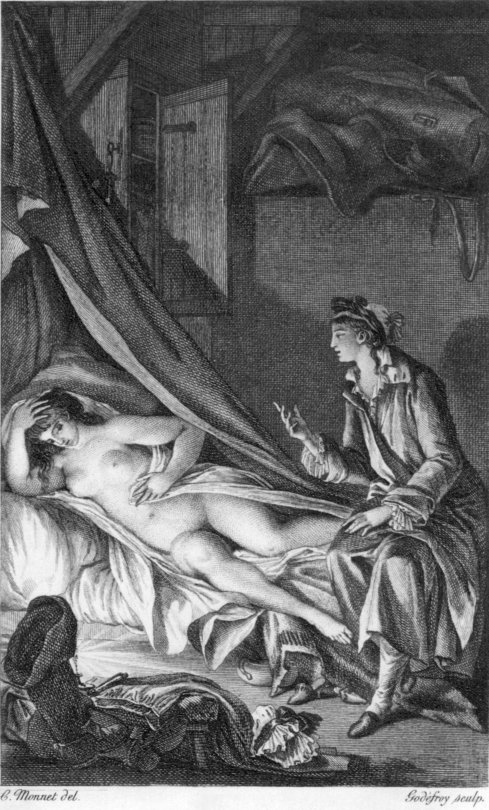 Prévan begged to be allowed to come on the following morning, and I consented: but, careful to defend myself, I ordered my waiting-maid to remain all through the time of this visit in my bed-chamber, whence, you know, one can see all that passes in my dressing-room, and it was there that I received him. Free in our conversation and having both the same desire, we were soon in agreement: but it was necessary to get rid of this inopportune spectator; it was for that I was waiting.