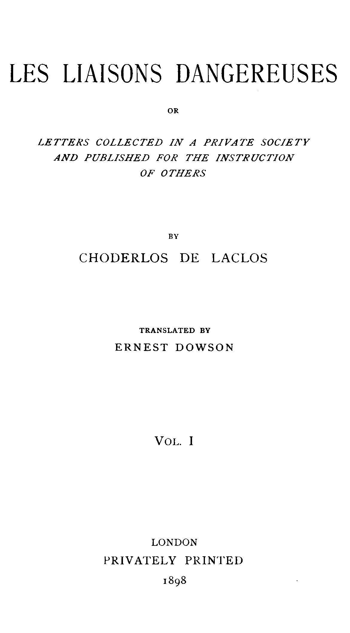 | I. | Cécile Volanges to Sophie Carnay, at the Ursulines of .... | 1 |