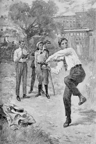 “Why, say; so’d I, Bat. I’m fond of that boy, too. You’ve no idea how plucky he is. Why, when I ran across him at the boarding-house, Bat, he’d been teaching himself to pitch with one of these ten-cent books! And he was doing it, too! Look here, let’s you and me sort of keep an eye on him, Bat. I haven’t a pile of money, either, but I’d spend a little to help Tom through college, if that was what you were thinking of.”