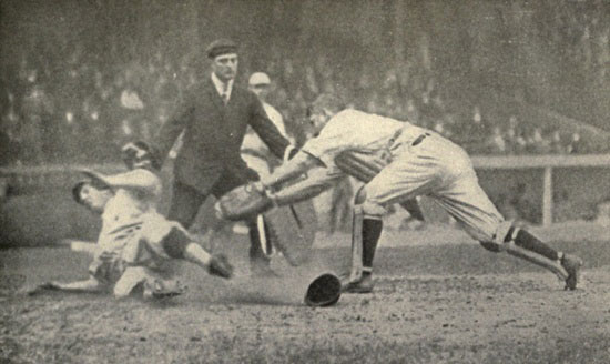 After we had stolen our way to a pennant in the National League in the season of 1911, and after our five leading base runners had been “mugged” by the police in St. Louis so that the catchers would know them, many fans expected to see us steal a world’s championship, and we half expected it ourselves.