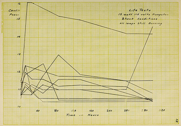 The total number of 15 watt lamps tested was 24, one half of which was obtained directly from the manufacturer and the other half bought in open market. It is well to mention at this time that this may have been the cause of the different qualities as brought out by the life tests.