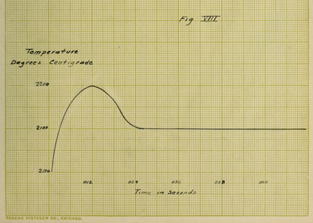 Still another theory, and the one that seems the most logical to the writer, is that the increase of resistance accompanying the rise of temperature takes a certain small interval of time so that when the temperature is rising 20at the rate of thousands of degrees per second, the resistance lags perceptibly. The resistance does not suppress the current as quickly as it should and an extra rush of current and heat energy goes through the filament, raising the temperature above normal, with a corresponding increase in brilliancy.
