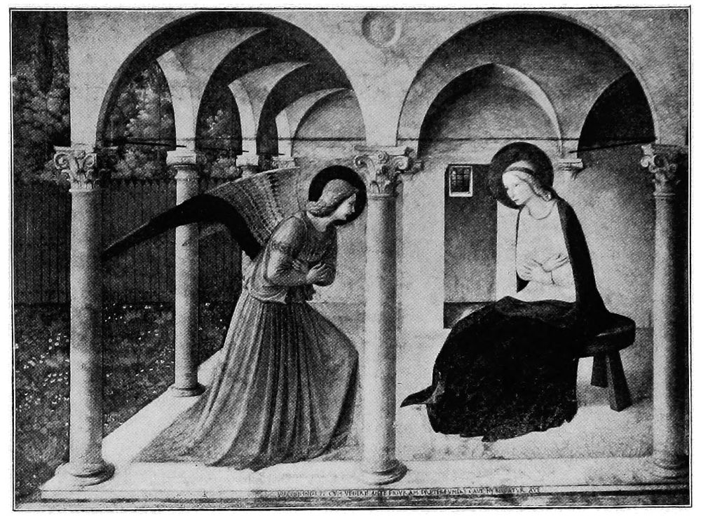 Giotto first approached the ideal representation of angels, and, naturally, his pupils excelled him in their conception{36} of what these celestial beings should be. It was, however, Angelico who first—and shall we not say last?—succeeded in portraying absolutely unearthly angels,—angels who must have appeared to him in his holy dreams, and impressed themselves on his pure spirit in such a wise that with mere paints and brushes he could picture a superhuman purity.