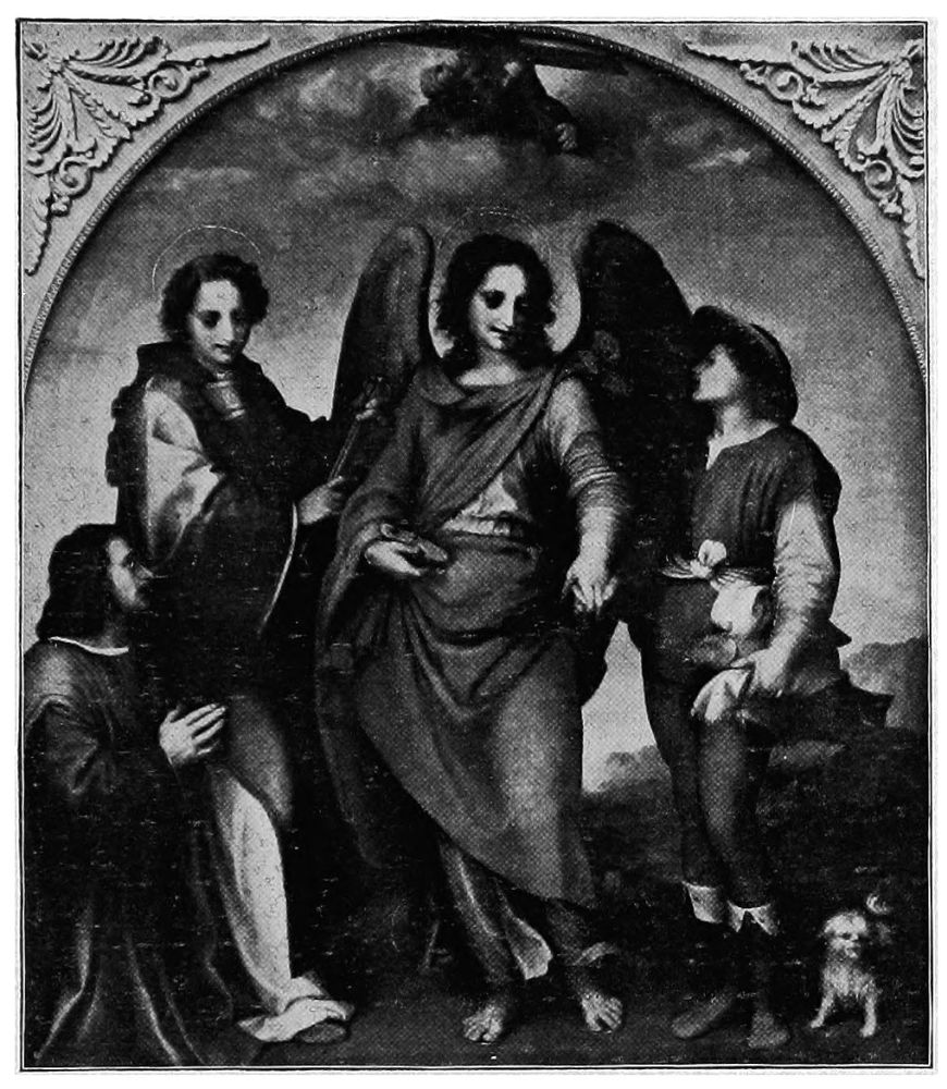 Two pictures of world-wide fame illustrate this change,—Raphael’s Madonna,{28} mentioned above, and Perugino’s Coronation of the Virgin. In the first, the entire background is composed of seraphs and cherubs apparently evolved from thin blue air, and in constant danger of disappearing in the golden-tinted background. In the second, the multi-colored wings of the floating cherubim are beautiful and the harmony of tones is exquisite, but they represent an innovation to which one must become more and more accustomed as artists are less reverent in their work.