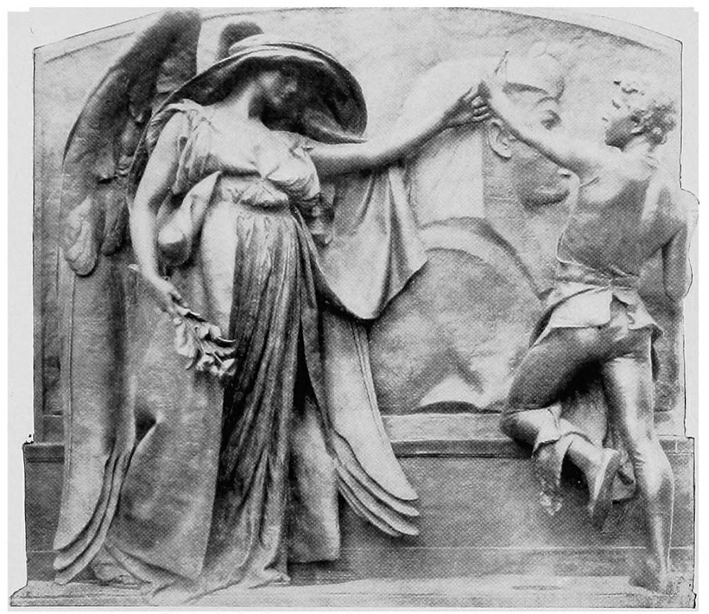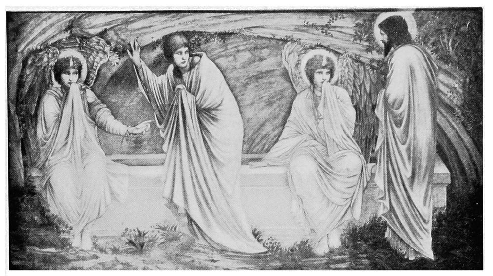 I shall presently speak of angels in their offices of messengers, guardians, choristers, and comforters. At present I am thinking of the multitudes of angels which were introduced into early religious pictures to indicate a “cloud of witnesses.” They lend an element of beauty and of spiritual emotion to the scenes honored with their presence. Their effectiveness has appealed to many Christian architects who have fully profited by the example of Solomon, who “carved all the walls of the house—temple—with carved figures of cherubim,” and he made the doors of olive-tree, and he carved on them figures of cherubim.