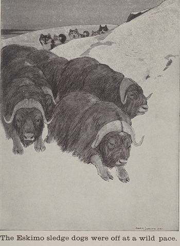 They were in the very heart of the frozen snowclad windswept tundra. That frozen desolate belt that stretches entirely around the globe, between the timber line and the arctic ice. A region where only reindeer moss and creeping willows flourish perennially, and where the caribou, the reindeer, and the musk ox alone thrive, although certain foxes and also the dread white wolf eke out a scant living in this desolate region.