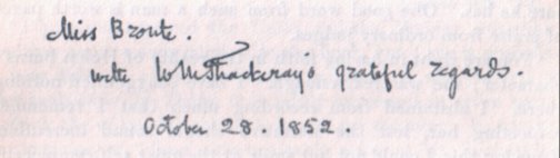 Thackeray, William Chapter xv, 403-428; on Charlotte, 25, 403, 428; on Jane Eyre, 404, 406, 408; Jane Eyre dedicated to, 403, 408; compared to Charlotte, 348-49, 408; visited by Charlotte, 416, 418, 420-3, 441; sends Vanity Fair to Charlotte, 1, 403; his illness, 356; his illustrations, 342; his lectures, 403, 427; Charlotte on, 172, 177, 188, 199, 270, 275, 276, 319, 320, 333, 340, 343, 362, 374, 391, 404, 406, 411, 412, 419, 423; Lady Eastlake on, 348; Charles Kingsley on, 16; his friendship with W. S. Williams, 371.