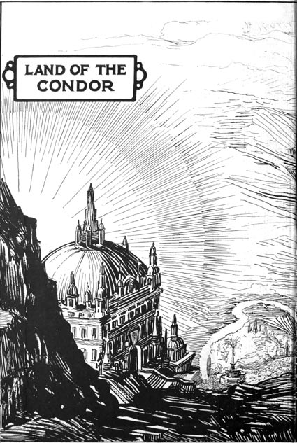“It is the last festival,” she said. “With this the Land of the Condor will pass away. The outside world of men has tracked us here before the dream that we had of a golden age could be fulfilled. Not with us can these be allied. They love not as we love; their faith, the beauty that they prize, is not as ours. In another time it might have been—perhaps it still will be. But, if it is to be, that dream will come true ages after this Feast, this Sacrifice, of the Golden Man is over.”