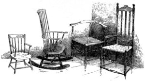 What fine buildings those houses of old times were and still are!—not in the least pretentious, but having a certain distinguished air of comfort and stability; no suggestion of the doll-house which so many of our Queen Anne cottages bring to mind, but withal an appearance of quiet and attractive dignity. The supreme effort of the builder seems to have centred in the doorways, which are often quite intricate in their ornament; yet they are never reckless in design, and are always pleasing in effect. Often, too, the decoration of the doorway was echoed in the ornament of the window-frames and the cornice under the eaves. Piazzas were rare, but many houses had a porch before the entrance. The finer residences had knockers on the front doors. Door-bells came into use a little later. Instead of the modern door-knobs, iron latches were used, or in some cases wooden ones. If the latch had no thumb-piece—and the more primitive ones had not—a string was attached and run through a hole bored for the purpose just above. The latch was on the inside, and there was no way of raising it except the latchstring hung out. Locking was readily accomplished by pulling in the string. Some houses had wooden buttons on the doors just over the latch, which, when turned down, held the latch in 7 8 9 its notch and thus locked the door. In still other cases doors were locked by means of a fork thrust in just above the latch, but for the most part doors of buildings, both public and private, went unlocked.