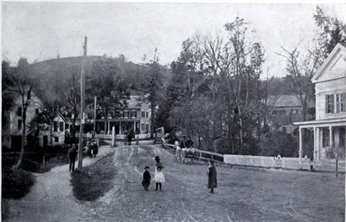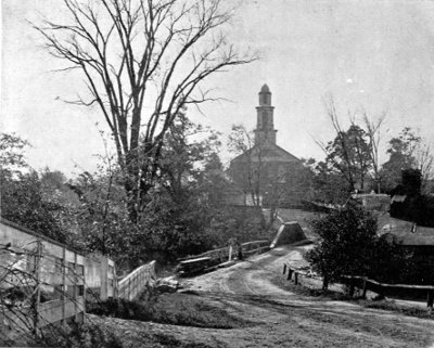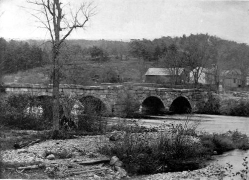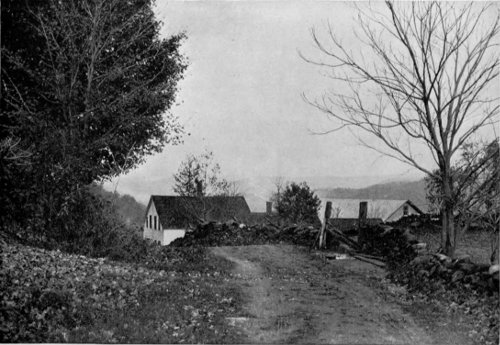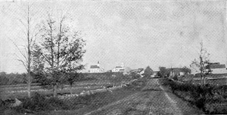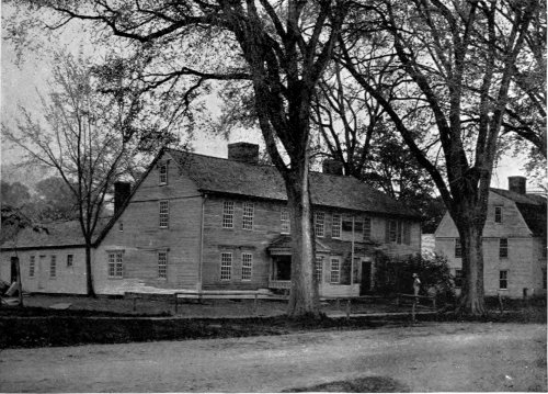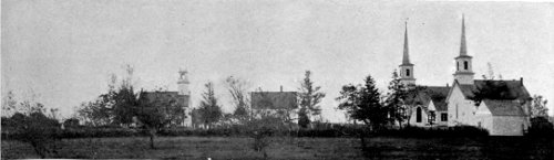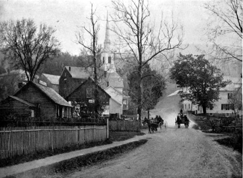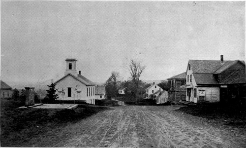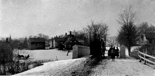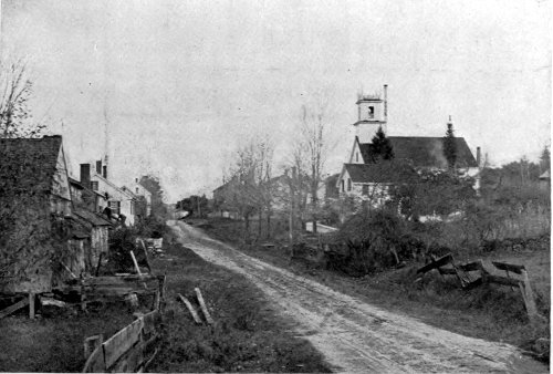 Here was the meeting-house, a big, quiet building fronted by the spire. A group of weather-worn sheds were close behind it, where parishioners living at a distance might shelter their horses during services. Not far away was the tavern, a substantial and roomy building whose sign swung from the front or dangled from a tree or pole close by. Then there would be four or five little shops and stores among the lines of comfortable two-story dwellings.