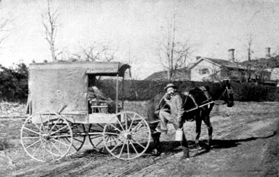Another characteristic vehicle of the times was a long, heavy wagon with an arched canvas top and high board sides, drawn by from four to ten horses, which travelled between Boston and towns inland, conveying tea, coffee, and store goods, and returning with a load of pork, butter, cheese, and grain. These wagons were useful when families wished to travel long distances. When the railroads began to do their former work the wagons were utilized by the emigrants, and finally on the Western plains were given the name of “prairie schooners.”