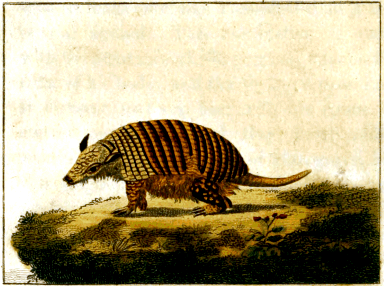 The opossum belongs to the south parts of the new world, but he does not, like the armadillo, seem confined to the hottest climates, for he is found not only in Brasil, Guiana, and Mexico, but also in Florida, Virginia, and other temperate regions of this continent. They are very common in these countries, as they bring forth often, and most authors say four or five, others six or seven, at a time. Marcgrave affirms, that he has seen six young ones alive in the pouch of the female; they were about two inches in length, were very nimble, and went in and out of the pouch many times in a day. They are very small when just brought forth: some travellers say they [245] are not bigger than flies when they go out of the womb into the pouch, and attach themselves to the teats. This fact is not so much exaggerated as might be imagined, for we have seen in an animal, whose species is somewhat like that of the opossum, young ones sticking to the teats not bigger than beans; and it is not improbable, that, in these animals, the womb is only the place of conception and first formation of the fœtus, whose unfolding is completed in the pouch. No one has observed the time of their gestation, which we think is shorter than in any other quadruped; and as this early exclusion of the fœtus is a singularity in nature, we wish those who have an opportunity of observing the opossums in their native country would contrive to discover how long the females go with young, and how long the young remain attached to the teats. This observation is curious in itself, and may become useful, in pointing out some means of preserving the lives of children born before their natural period.