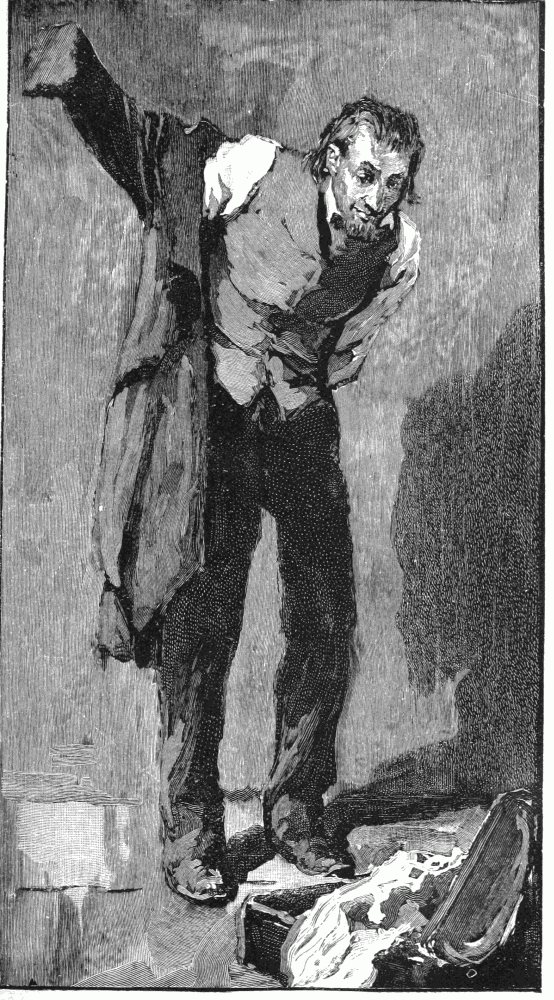 "His story fills out the missing parts of the evidence, and explains the apparent participation of the accused to have been but an intermingling of personalities. After Captain Heathcote had gone down the outside stairway with the two towels in his pocket, this man, Croom, who was passing the end of the garden at the time, and had seen him come out by the light from the lamp within, stole up the same stairway in order to peer into the apartment, partly from curiosity, partly from the thought that there might be something there to steal. He supposed there was no one in the room, but when he reached the window and peeped through a crack in the old blind, he saw that there was some one—a woman asleep. In his caution he had consumed fifteen or twenty minutes in crossing the garden noiselessly and ascending the stairway, and during this interval Mrs. Heathcote had fallen asleep. The light from the lamp happened to shine full on the diamonds in her rings as they lay, together with her purse and watch, on the bureau, and he coveted the unexpected booty as soon as his eyes fell upon it. Quick as thought he drew open the blind, and crept in on his hands and knees, going straight toward the bureau; but ere he could reach it the sleeper stirred. He had not intended murder, but his brute nature knew no other way, and in a second the deed was done. Then he seized the watch, purse, and rings, went out as he had come, through the window, closing the blind behind him, and stole down the stairway in the darkness. The man is left-handed. It will be remembered that this proved left-handedness of the murderer was regarded as a telling point against Captain Heathcote, his right arm being at the time disabled, and supported by a sling.