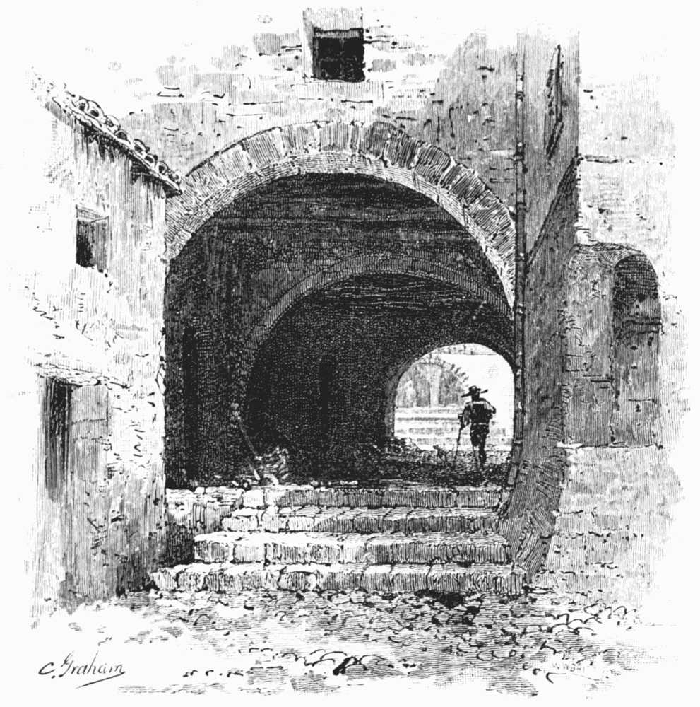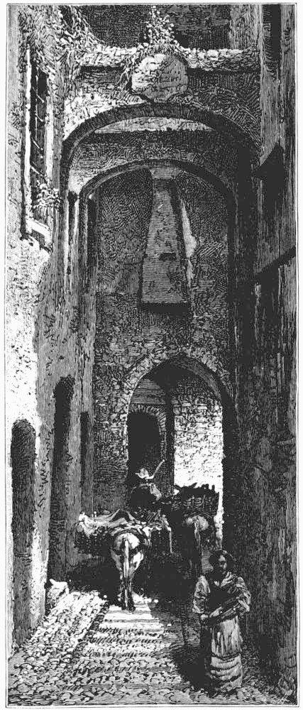 These various monuments of the esplanade do not, however, make Corfu in the least modern. They are unimportant, they are inconspicuous, when compared with the old streets which meander over the slopes behind them, fringed with a net-work of stone lanes that lead down to the water's edge. It has been said that the general aspect of the place is Italian. It is true that there are arcades like those of Bologna and Padua; that some of the byways have the look of a Venetian calle, without its canal; and that the neighborhood of the gay little port resembles, on a small scale, the streets which border the harbor of Genoa. In spite of this, we have only to look up and see the sky, we have only to breathe and note the quality of the air, to perceive that we are not in Italy. Corfu is Greek, with a coating of Italian manners. And it has also caught a strong tinge from Asia. Many of the houses have the low door and masked entrance which are so characteristic of the East; at the top of the neglected stairway, as far as possible from public view, there may be handsome, richly furnished apartments; but if such rooms exist, the jealous love of privacy keeps them hidden. This inconspicuous entrance is as universal in the Orient as the high wall, shutting off all view of the garden or park, is universal in England.