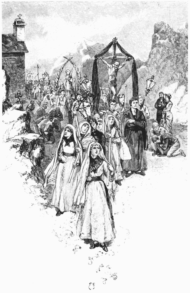 In spite of these survivals, ceremonial martyrdom for so-called religion's sake is, we may hope, at an end among the civilized nations; we have only its relics left. Corfu has one of these relics, a martyr who is sincerely honored—St. Spiridion, or, as he is called in loving diminutive, Spiro. Spiro, who died fifteen hundred years ago, was bishop of a see in Cyprus, I believe. He was tortured during the persecution of the Christians under Diocletian. His embalmed body was taken to Constantinople, and afterwards, in 1489, it was brought to Corfu by a man named George Colochieretry. Some authorities say that Colochieretry was a monk; in any case, what is certain is that the heirs of this man still own the saint—surely a strange piece of property—and derive large revenues from him. St. Spiro reposes in a small dim chapel of the church which is called by his name; his superb silver coffin is lighted by the rays from a hanging lamp which is suspended above it. When we paid our visit, people in an unbroken stream were pressing into this chapel, and kissing the sarcophagus repeatedly with passionate fervor. The nave, too, was thronged; families were seated on the pavement in groups, with an air of having been there all day: probably Christmas is one of the seasons set apart for an especial pilgrimage to the martyr. Three times a year the body is taken from its coffin and borne round the esplanade, followed by a long train of Greek clergy, and by the public officers of the town; upon these occasions the sick are brought forth and laid where the shadow of the saint can pass over them. "Yes, he's out to-day, I believe," said a resident, to whom we had mentioned this procession. He spoke in a matter-of-fact tone. After seeing it three times a year for twenty years, the issuing forth of the old bishop into the brilliant sunshine to make a solemn circuit round the esplanade did not, I suppose, seem so remarkable to him as it seemed to us. There is another saint, a woman (her name I have forgotten), who also reposes in a silver coffin in one of the Corfu churches. At first we supposed that this was Spiro. But the absence of worshippers showed us our mistake. This lonely witness to the faith was also a martyr; she suffered decapitation. "They don't think much of her," said the same resident. Then, explanatorily, "You see—she has no head." This practically minded critic, however, was not a native of Corfu. The true Corfiotes are very reverent, and no doubt they honor their second martyr upon her appointed day. But Spiro is the one they love. The country people believe that he visits their fields once a year to bless their olives and grain, and the Corfu sailors are sure that he comes to them, walking on the water in the darkness, when a storm is approaching. Mr. Tuckerman, in his delightful volume, The Greeks of To-Day, says, in connection with this last legend, that it is believed by the devout that seaweed is often found about the legs of the good bishop in his silver coffin, after his return from these marine promenades. There is something charming in this story, and I shall have to hold back my hand to keep myself from alluding (and yet I do allude) to a shrine I know at Venice; it is far out on the lagoon, and its name is Our Lady of the Seaweed. The last time my gondola passed it I saw that by a happy chance the high tide had left seaweed twined about it in long, floating wreaths, like an offering.