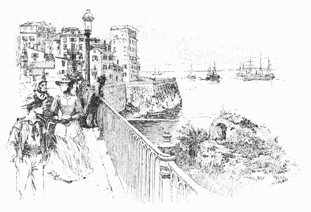 The esplanade also contains the one modern monument erected by the Corfiotes themselves—a statue of Capo d'Istria. John Capo d'Istria, a native of Corfu, was the political leader of Greece when she succeeded in freeing herself from the Turkish yoke. The story of his life is a part of the exciting tale of the Greek revolution. His measures, after he had attained supreme power, were thought to be high-handed, and he was accused also of looking too often towards that great empire in the North whose boundaries are stretching slowly towards Constantinople; he was resisted, disliked; finally he was assassinated. Time has softened the remembrance of his faults, whatever they were, and brought his services to the nation into the proper relief; hence this statue, erected in 1887, fifty-six years after his death, by young Greece. It is a sufficiently imposing figure of white marble, the face turned towards the bay with a musing expression. Capo d'Istria—a name which might have been invented for a Greek patriot! The Eastern question is a complicated one, and I have no knowledge of its intricacies. But a personal observation of the hatred of Turkey which exists in every Greek heart, and a glance at the map of Europe, lead an American mind towards one general idea or fancy—namely, that Capo d'Istria was merely in advance of his time, and that an alliance between Russia and Greece is now one of the probabilities of the near future. It is unexpected—at least, to the non-political observer—that Hellas should be left to turn for help and comfort to the Muscovites, a race to whom, probably, her ancient art and literature appeal less strongly than they do to any other European people. But she has so turned. "Wait till Russia comes down here!" she appears to be saying, with deferred menace, to Turkey to-day.