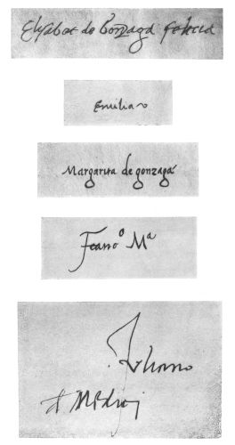 - the Duchess of,—see Gonzaga, Eleanora and Elisabetta