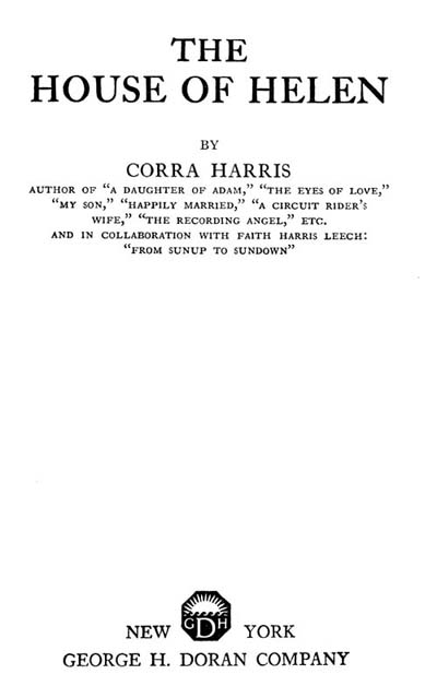 My task is simply to set down here exactly what happened, with no more regard for the moral than the facts themselves carry. And so I give you my word that this is a true story, and that the events I have recorded did happen and that the “House of Helen” does stand to this day in Shannon. You may see it from the window of your car, as you pass through, halfway down Wiggs Street, on the right-hand side, and facing you. It is not so large, so pretentious as the other residences which have taken the place of the cottages that stood along this street during the golden-oak period, but it looks different, that house, serene, as a house should that has weathered the storm and has fair weather forever within.