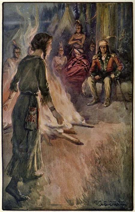 “It is well! Many years ago a chief of the elder branch of my brother’s house was the friend of Tecumseh. They dwelt in the same cabin and followed the same trails. They were brothers. Ten years ago the white chief travelled the long trail to the land of his fathers. But before he died he[13] said to Tecumseh: ‘Brother! To you I leave my one child. Care for her as you would your own. Perhaps in days to come men of my own house may seek her, saying that to her belong much land and gold. If they come from the south, from the branch of my house living in Alabama, at the ancient home of the Shawnees, let her go with them. But if they come from the branch of my house that dwells in England do not let her go. The men of that branch, the branch of the chief Brito, are wicked and vile, men whose hearts are bad and who speak with forked tongues. If they come for her, then do you seek out my brothers in the south and tell them, that they may take her and protect her. If they fail you then let her live with you forever.’