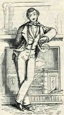 One morning, Mr. Verdant Green and Mr. Bouncer were lounging in the venerable gateway of Brazenface. The former gentleman, being of an amiable, tame-rabbit-keeping disposition, was making himself very happy by whistling popular airs to the Porter's pet bullfinch, who was laboriously engaged on a small tread-mill, winding up his private supply of water. Mr. Bouncer, being of a more volatile temperament, was amusing himself by asking the Porter's opinion on the foreign policy of Great Britain, and by making very audible remarks on the passers-by. His attention was at length riveted by the appearance on the other side of the street, of a modest-looking young gentleman, who appeared to be so ill at ease in his frock-coat and "stick-up" collars, as to lead to the strong presumption that he wore those articles of manly dress for the first time.