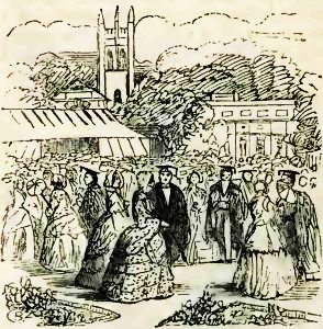 [2] Town and Gown disturbances are of considerable antiquity. Fuller and Matthew Paris give accounts of some which occurred as early as the year 1238. These disputes not unfrequently terminated fatally to some of the combatants. One of the most serious Town and Gown rows on record took place on the day of St. Scholastica the Virgin, February 10th, 1345, when several lives were lost on either side. The University was at that time in the Lincoln diocese; and Grostête, the Bishop, placed the townspeople under an interdict, from which they were not released till 1357, and then only on condition that the mayor and sixty of the chief burgesses should, on every anniversary of the day of St. Scholastica, attend St. Mary's Church and offer up mass for the souls of the slain scholars; and should also individually present an offering of one penny at the high altar. They, moreover, paid a yearly fine of 100 marks to the University, with the penalty of an additional fine of the same sum for every omission in attending at St. Mary's. This continued up to the time of the Reformation, when it gradually fell into abeyance. In the fifteenth year of Elizabeth, however, the University asserted their claim to all arrears. The matter being brought to trial, it was decided that the town should continue the annual fine and penance, though the arrears were forgiven. The fine was yearly paid on the 10th of February up to our own time: the mayor and chief burgesses attended at St. Mary's, and made the offering at the conclusion of the litany, which, on that occasion, was read from the altar. Thia was at length put an end to by Convocation in the year 1825.