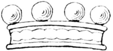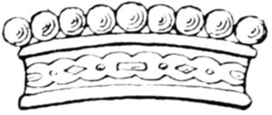 At first coronets of rank were only circlets of metal, then on this circlet were put balls or "pearls" (as in the portrait of King Alfred on the Dowgate Hill brooch, or the coronet of a Baron or Viscount), then the pearls were[Pg 13] ornamentally tripled, and this trefoil soon turned into a leaf form (e.g. the coronet of an Earl or Marquis, alternately pearls and leaves), and finally leaves alone figure as the mark of the highest peerage rank of a subject (e.g. the coronet of a Duke, leaves only).