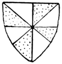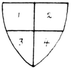 Several other methods of indicating colour by means of black and white lines laid in certain directions have been tried, but they have all failed to stand the test of time except that invented by an Italian Jesuit Father, Silvestro Petra Sancta, who lived in the seventeenth century. His method is figured and described in a[Pg 6] book he wrote and illustrated on Italian coats-of-arms. It is a very useful book, because the coats are arranged according to the devices upon them. It is in fact an illustrated ordinary of Italian arms, Tesserae Gentilitiae, Romae, 1638.