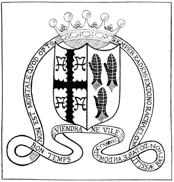 With regard to the identification of coats-of-arms or crests on books, this is a process of exhaustion, and it will be found easiest to begin with accessories, if there are any. These accessories are found either as augmentations on the shield or additions outside it, and by their help it is often easy to narrow down the limits within which the owner must come. By the help of coronets it is possible to fix the exact rank of the owner, and this alone, together with the date of the book, ought to make the identification easy, by help of a Peerage of the same date.