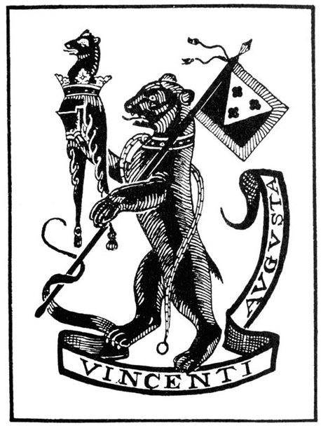 Armorial devices stamped on the outsides of books occur in England from the end of the fifteenth century onwards, and very fine examples are found of the sixteenth and seventeenth centuries particularly. Towards the end of the seventeenth century the popularity of the book-stamp was diminished by the growth of the use of adhesive book-plates. It may be mentioned that, especially during the reign of Elizabeth, many fine armorial woodcuts are found in English books, the arms being generally those of the patron to whom the book was dedicated.
