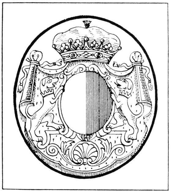 While fully appreciating the fact that the forms of modern coronets only date from the time of Charles II., it is still interesting to inquire by what methods peers of earlier date marked their dignity pictorially, and it seems that this was done by means of the use of a crest-chapeau, and the use of a helmet under it. But in sculpture certain forms of coronets also appear. Crowns and coronets are placed immediately upon the top of the shield. Over the crown or coronet comes the helmet, and over the helmet the crest.