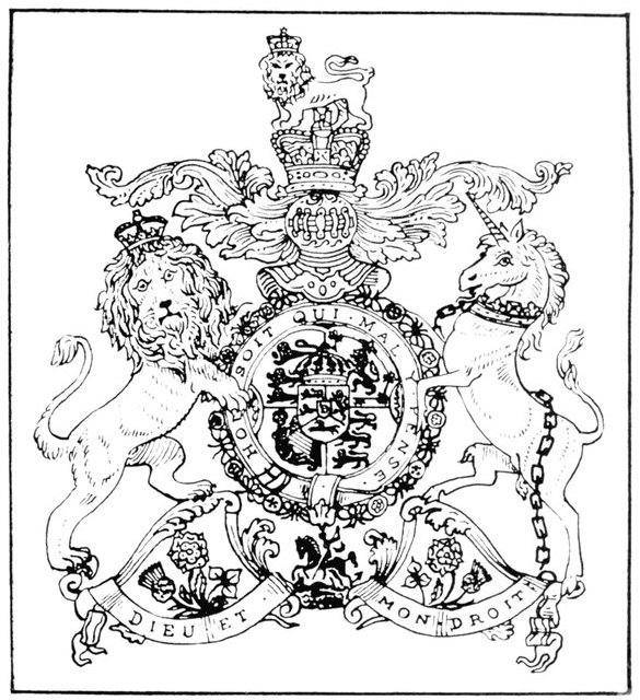 In the Charter of Incorporation of this Order granted[Pg 11] by Queen Victoria in 1888, it is ordained that "Knights of Justice may bear the Arms of the Order, viz. Gules, a cross argent embellished alternately in each of the principal angles with a Lion guardant and a Unicorn, both passant or," as a chief on their coat-of-arms. The lion and the unicorn were added to the then existing arms of the English Langue of the Order by George IV.