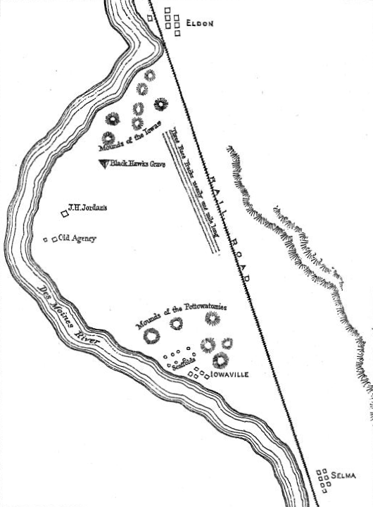 According to Mr. M. B. Kent, the Sacs and Foxes, who formerly resided in the region now under consideration, buried the body "in a grave made about 2½ feet deep, which was laid always with the head towards the east, the burial taking place as soon after death as possible. The grave was prepared by putting bark in the bottom of it before the corpse was deposited, a plank covering made and secured some distance above the body."[Pg 21]
