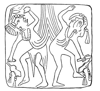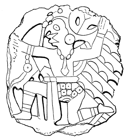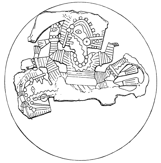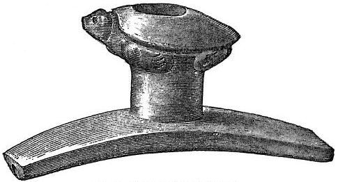 The characteristics which appear to warrant us in concluding that the works of this region pertain to a different people from those in the other districts, at the same time seem to show some relation to those of[Pg 11] the Ohio district. Such are the numerous stone pipes, the altar-like structures found in some of the mounds, and the presence of mica plates with the skeletons. But the peculiar features are the mode of burial, the absence of pottery, and the numerous polished celts and engraved shells found in the mounds.