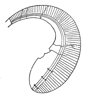 Another curious circumstance that may be noticed by inspection of the figures of mounds accompanying this work is the gradual transition, as it were, or change of one form into another. Examples can be found of all forms, from a true circle through the oval and elongated oval to the oblong mounds and long ridges. Again, there is a succession of mounds, from the simple ridge of considerable size at one end and gradually diminishing to a point at the other, through the intermediate forms, having one, two, three, or four projections to the "turtle-form." In this way, also, we may trace a gradual development (so to speak) of nearly all the more complicated forms.