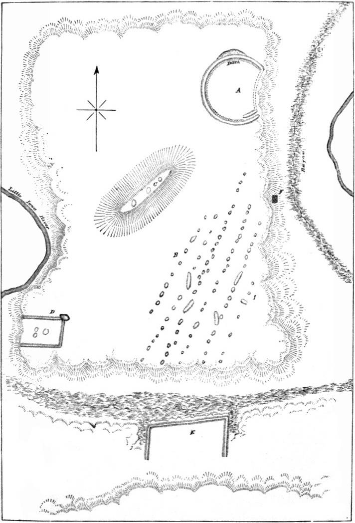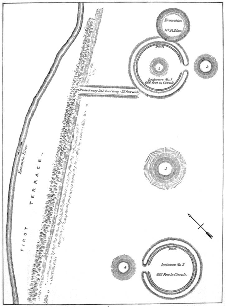Whether the greater extent of treeless country in former times was owing to natural or artificial causes it is now difficult to determine, but the great extent of ancient works within the depths of the present forests would seem to indicate that the country was at least kept free from trees by the agency of man.