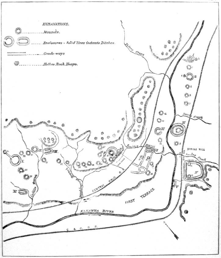 As the antiquities of this district have been shown by Squier to be chiefly due to the Indian tribes occupying that section at the time of its discovery by the Europeans, it is unnecessary to note the distinguishing characteristics. The works are chiefly enclosing walls, remains of palisades, and burial mounds.