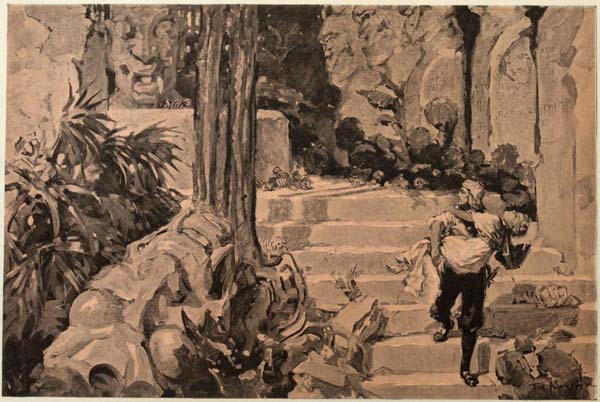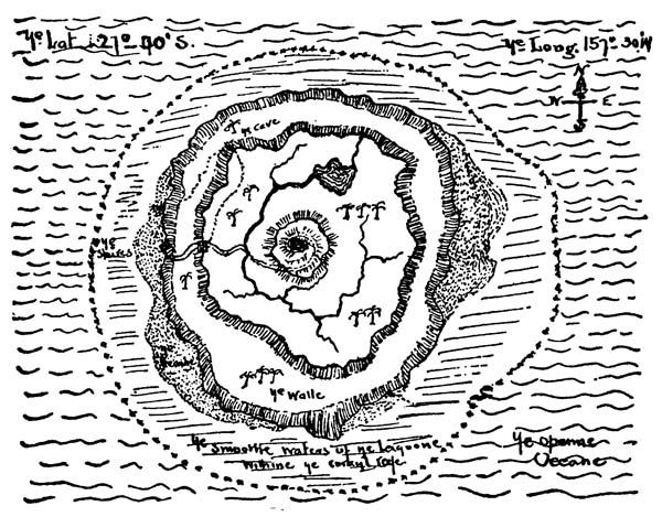 In order to safeguard the reputation of that worthy seaman and most gallant gentleman who writes this memoir, the editor thereof deems it proper to call attention to the fact that Master Hampdon has described accurately the Island of Mangaia of the Cook, or Hervey, group in the South Seas. It is still completely encircled by the unbroken barrier reef, over which the natives ride in their light canoes. The stairs still exist despite the earthquake to which Master Hampdon refersâand other upheavals which may have followedâand are still traversed by the feet of curious, if infrequent, visitors. For the rest, such altars and platforms as he and his little lady found still abound in the South Seas. Also on Easter Island, and on others, too, such statues of the grotesque and hideous âStone Goddesâ as he describes may be seen. Who made them and why, as well as when they were put there, are as much mysteries today as they were when, in that far-off time, Master Hampdon and his lady sailed those then unknown seas in that brave little barque The Rose of Devon.