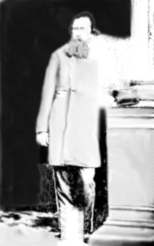 There was much discussion at the time as to who really fired the first gun at Sumter. Great importance was attached to the episode, and as there were different opinions, and it was never satisfactorily settled, it is not expected that any new light can be thrown on it at this late day. It was first said to have been General Edmond Ruffin, [29] a venerable octogenarian from Virginia, who at the secession of South Carolina came to this State and offered his services as a volunteer. He had at one time been a citizen of South Carolina, connected with a geological survey, and had written several works on the resources and possibilities of the State, which created quite an interest at that day and time. He was one of the noblest types of elderly men it has ever been my fortune to look upon. He could not be called venerable, but picturesque. His hair hung in long silvery locks, tied in a queue in the fashions of the past centuries. His height was very near six feet, slender and straight as an Indian brave, and his piercing black eyes seemed to flash fire and impressed one as being able to look into your very soul. He joined the "Palmetto Guards," donned the uniform of that company, and his pictures were sold all over the entire South, taken, as they were, in the habiliments of a soldier. These showed him in an easy pose, his rifle between his knees, coat adorned with palmetto buttons closely buttoned up to his chin, his hair combed straight from his brow and tied up with a bow of ribbon that streamed down his back, his cap placed upon his knee bearing the monogram "P.G.," the emblem of his company, worked in with palmetto.