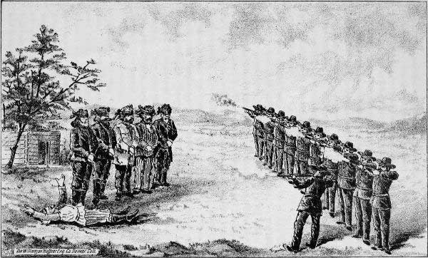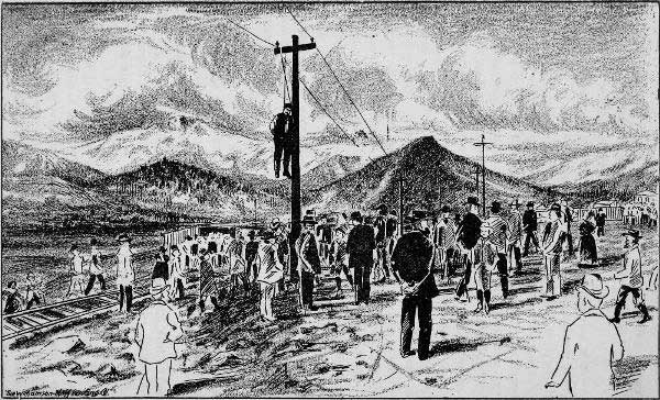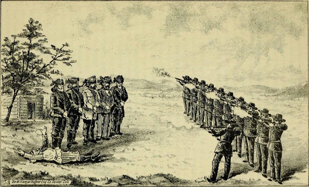 The crime for which he was finally shot to death was the murder of two Swede miners at Red Hill pass, in South park, in 1891. He, with a younger Mexican, killed the Swedes while they were camped at night, and dragged their bodies away from the road so that they were not found for several days. Finally they were discovered, and the sheriff of Park county, with two deputies, started after the Mexicans, who they learned had gone to Costillo’s old retreat in the Huerfano cañon. They seem to have killed the two miners simply for revenge, as neither of them had any money or other property sufficient to tempt the cupidity of even a Mexican.