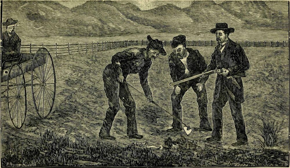 But time and again the gun refused to go off. Finally, Cook turned over his revolver to Smith and tried to fix the gun, while on the run. He endeavored to take it to pieces, but failed. He pulled one cartridge, and while putting in another[Pg 418] it stuck fast. By main strength it was finally forced into the gun. Just before this Cook’s horse, while attempting to jump a high sage brush, landed with his hind feet in a prairie dog hole, and he was thrown forward on the pommel of his saddle and was painfully hurt. After the cartridge had been forced home the officers rode up within range and gave two shots, both missing the mark. They again went after the men, who now left the road and turned into the prairie, and slightly towards Cañon City, moving over the country, jumping over the tall sagebrush and plunging into embankments of snow, over which the sun, which had now risen, gleamed as on the crest of ocean waves, almost blinding men and beast, but yet failing to take the edge off the March air, which was bitter cold.