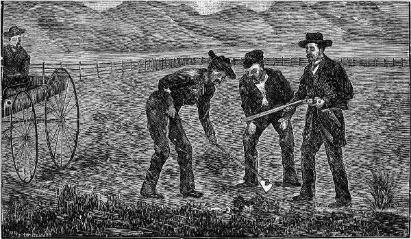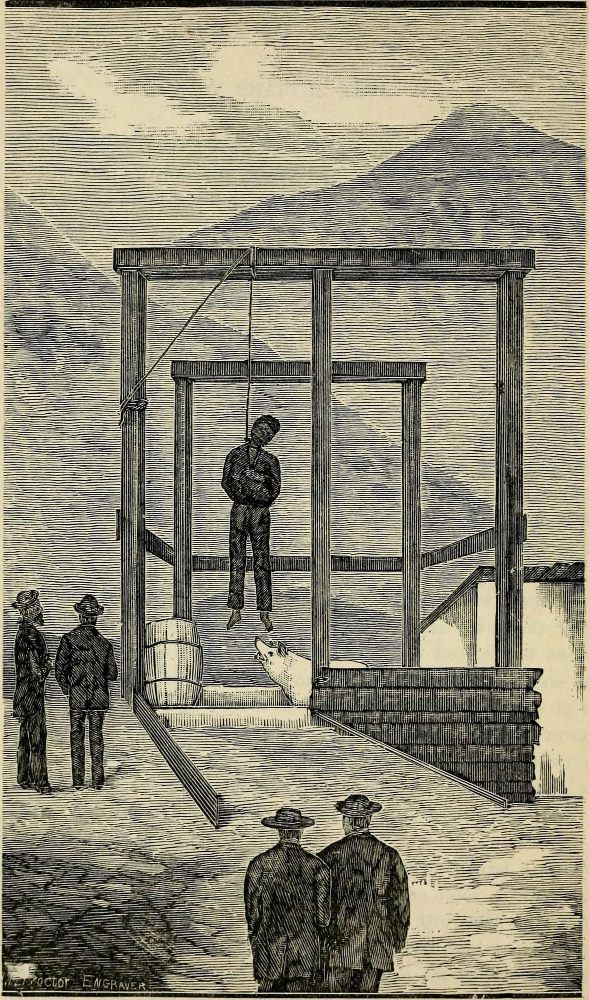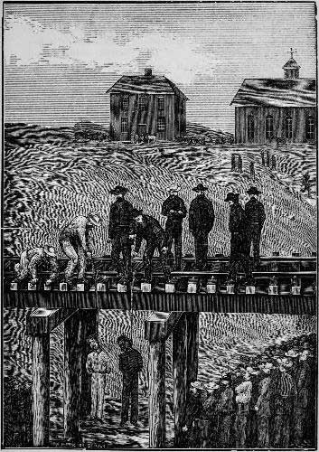 Looking far off towards the city, they saw a string of horsemen coming towards them, numbering apparently about twenty, and some of them five miles away. These were Sheriff Ellis and his posse, coming to the rescue of the two officers. The first of them had been encountered about half a mile from the scene of the capture, and soon after the sheriff himself was met. Mr. Ellis had started out gallantly at the head of his party. But it must be remembered that the hour was early. The sheriff was a man of regular habits. He had started out very soon after getting his breakfast. He had ridden along for ten miles far[Pg 422] in advance of the remainder of his party. He was fast gaining on Cook and Smith, and might eventually have passed them in the chase and have been the first to come up with the flyers. But he was compelled to stop to see other and slower members of his party pass him one by one, and to hear their jeers and hoots. In brief, the same circumstance which prevented the proverbial dog from catching the proverbial rabbit, stepped in to prevent Sheriff Ellis from overtaking the fugitive criminals. Poor fellow! no one enjoyed the joke more than he did. He was a good soul, and loved his fun and his fellow mortals too.