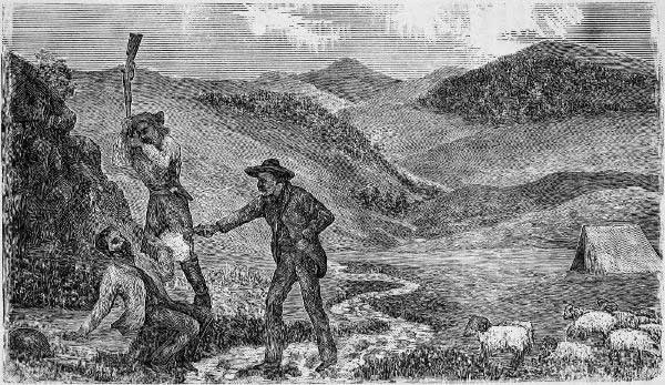 Turning then for the first time, Shepherd, who was unhurt, discovered that Ramsey had been knocked from his horse. He had been shot through and through, the ball passing near his heart. There was a ranch a few miles distant and Shepherd determined to make an effort to get his friend to it and to leave the thieves where they had fallen. “Dutch Pete” proved to be the man at whom Ramsey had directed his aim. He it was who had shot Ramsey. But Ramsey’s shot had gone straight home, passing through Pete’s heart. The other thief was also mortally wounded, and soon died. Their bodies were covered with stones and left where they had fallen. The stolen horses were gathered together and returned to their owner.
