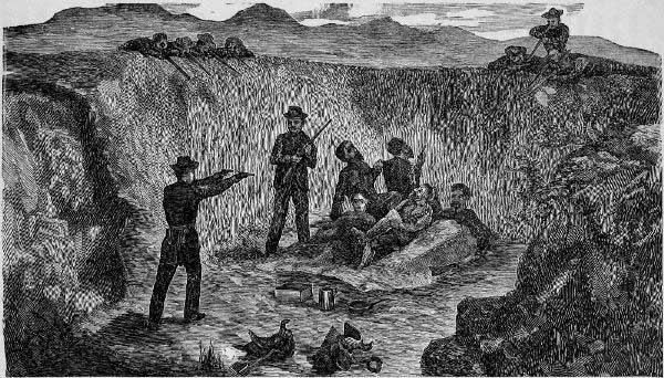 A few feet further on, the fugitives were seen to slacken their pace, and one of them to reel in his saddle and fall off his horse into the snow. This was Clodfelter, and he said to Johnson, as he stopped: