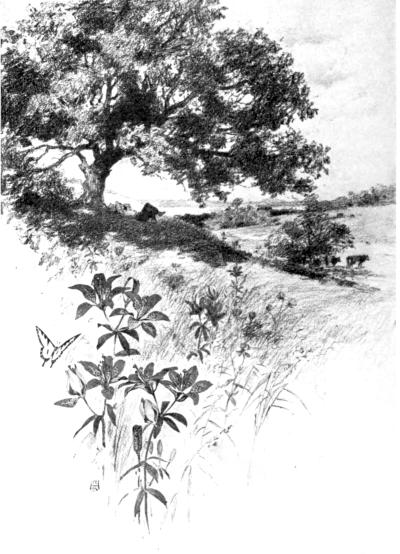The drowsy silence of the full, hot noon lies deep across the field. Stream and cattle and pasture-slope[Pg 3] are quiet in repose. The eyes of the earth are heavy. The air is asleep. Yet the round shadow of my oak begins to shift. The cattle do not move; the pasture still sleeps under the wide, white glare.