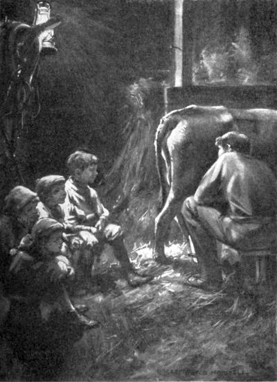 round at the barn: It is a common custom with farmers to make this nightly round in order to see that the stock is safe for the night. Were you ever in a barn at night where the horses were still munching hay, and the cattle rattling their stanchions and horns? Recall the picture in Whittier’s “Snow-Bound.”