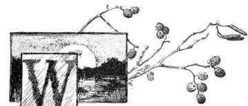 It is interesting to observe that the subject of the initial for chapter IV is witch-hazel; that for chapter VII, the cocoons of the cecropia, the promethea, and the basket worm; and that for chapter VIII, a sprig of alder, with the old fruit and a budded catkin. The subjects of the other initials require no identification.