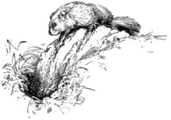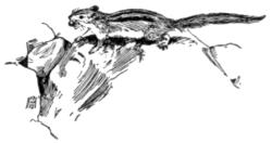 Chipmunk: Our little striped ground squirrel, interesting because he has cheek-pouches and thus forms a link between the arboreal squirrels (gray squirrels, etc.) and the ground squirrels or spermophiles, of which the beautiful little thirteen-lined squirrel of the prairies is an example.
