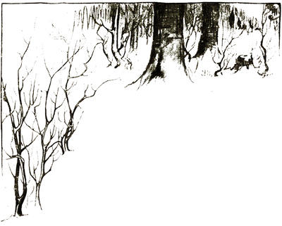 I pushed through the hedge of cedars and stopped for an instant, confused. The very pond was gone! and the trees! No, there was the pond,—but how[22] small the patch of water! and the two persimmon trees? The bush and undergrowth had grown these twenty years. Which way? Ah, there they stand, only their leafless tops showing; but see the hard angular limbs, how closely globed with fruit! how softly etched upon the sky!